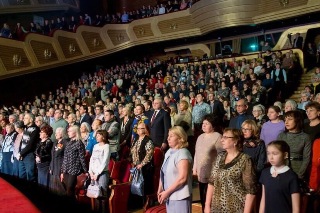 В зале театра царила атмосфера единения, патриотизма и любви! Зрители с удовольствием исполняли любимые песни вместе с солистами Хора.